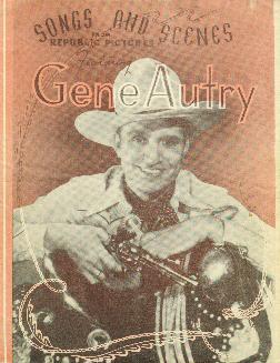 * Songs Gene Autry sings: containing new and old favorites that will live forever. Compiled by Gene Autry, arranged by Nathan Scott, edited by Dave Gordon. Hollywood, CA: West'rn Music Publishing, 1942. 51 p. Ill. 17 songs.
